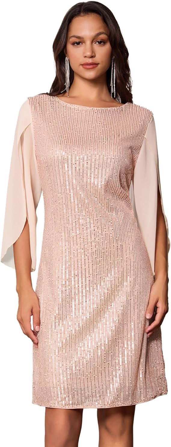Women 2024 Sequin Dresses Shiny Sparkly Cocktail Party Wedding Guest Dresses