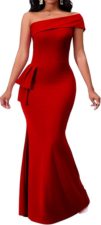 Women's Sexy One Shoulder High Split Cocktail Wedding Party Maxi Dress