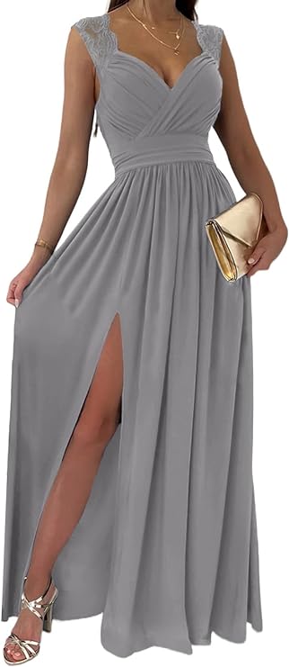 Womens 2024 Formal Dresses Wrap V-Neck Ruched Sexy Bridesmaid Wedding Guest Maxi Dresses