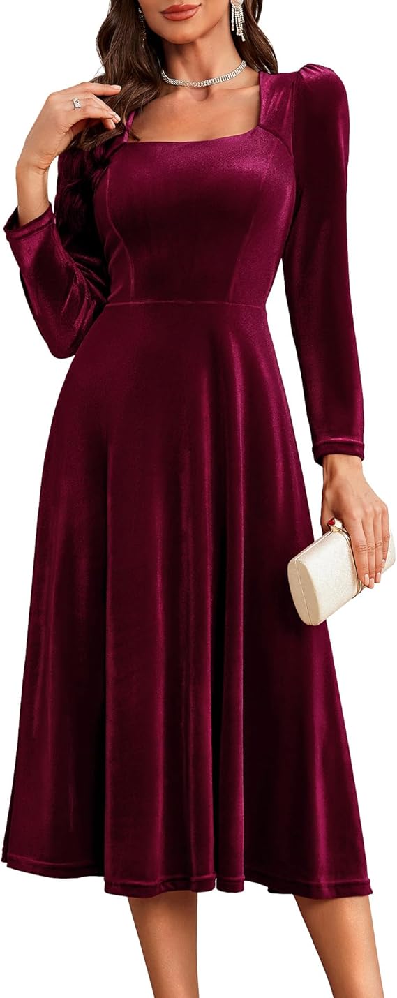 Women Velvet Dress Cocktail Party Evening Dresses Long Sleeve Wedding Guest Formal Dresses