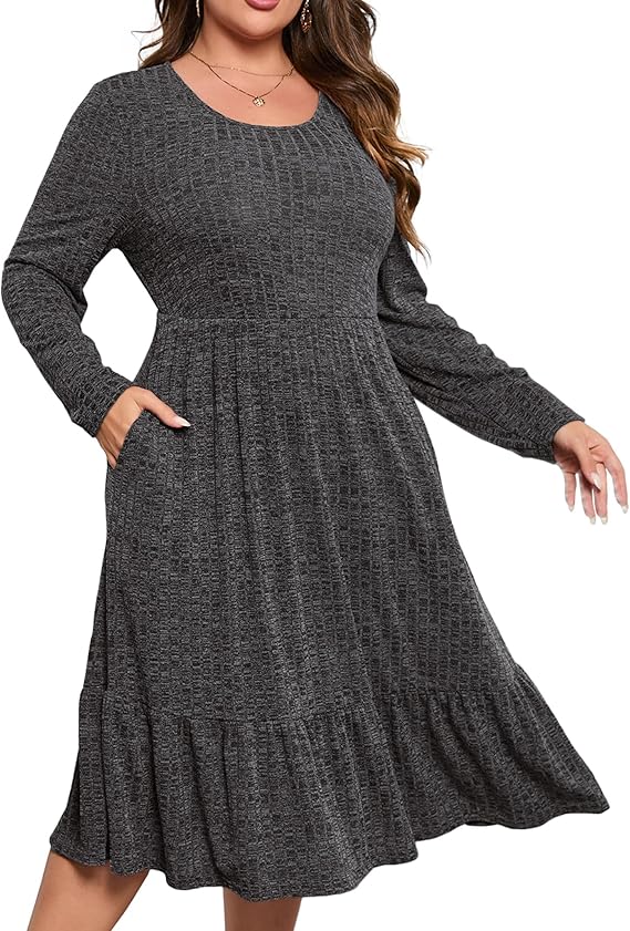 Womens Plus Size Ribbed Knit Sweater Dress Long Sleeve Stretchy Comfy Casual Fall Dress with Pockets