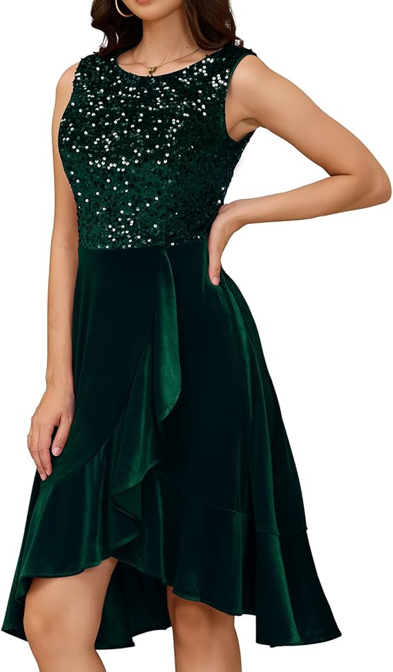 Velvet Sequin Christmas Holiday Party Dresses for Women, Sparkly Cocktail Wedding Guest Dress
