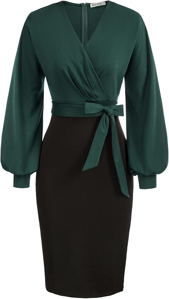 Women's Work Pencil Dress Wedding Guest Office Dresses Cocktail Party Long Sleeve