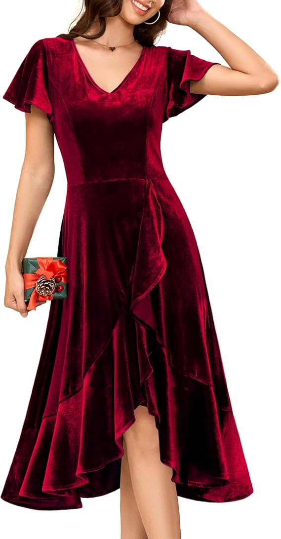 Velvet Cocktail Christmas for Women Dresses 2024, Formal Wedding Guest Holiday Party Winter Dress V-Neck Dress