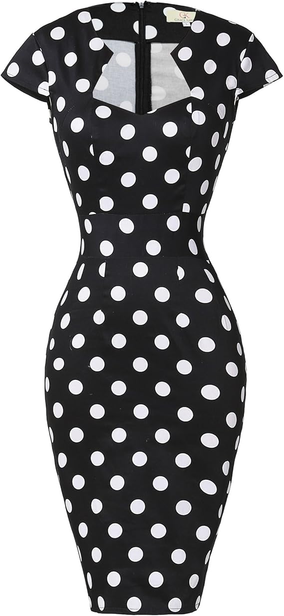 Womens 50s 60s Vintage Pencil Dress Bodycon Cap Sleeve Dress