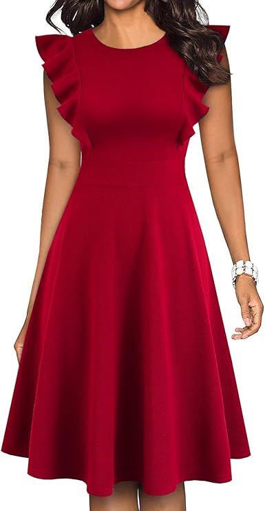 Women's Vintage Ruffle Floral Flared A Line Swing Casual Cocktail Party Dresses