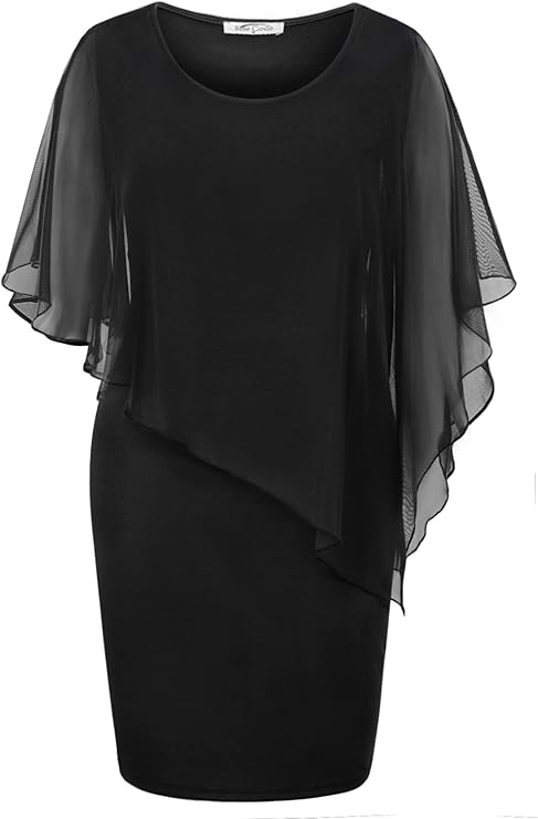 Women's Mesh Cape Overlay Bodycon Knee Length Pencil Dress for Wedding Guest