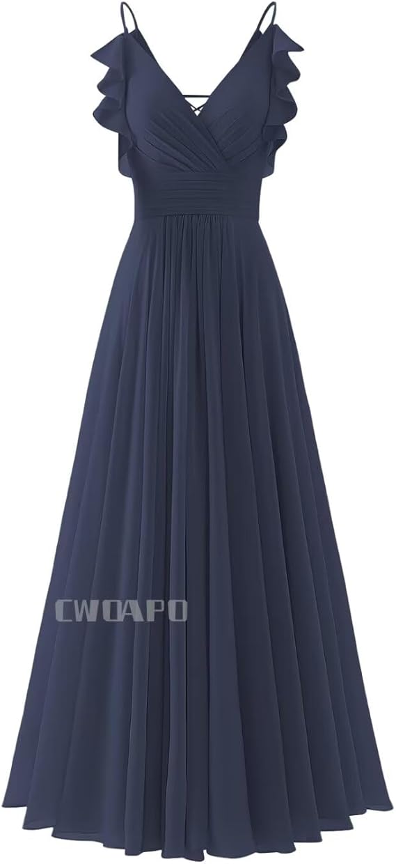 V Neck Bridesmaid Dresses for Wedding 2024 Long Chiffon Spaghetti Straps Formal Dress Ruffles A Line Evening Gowns