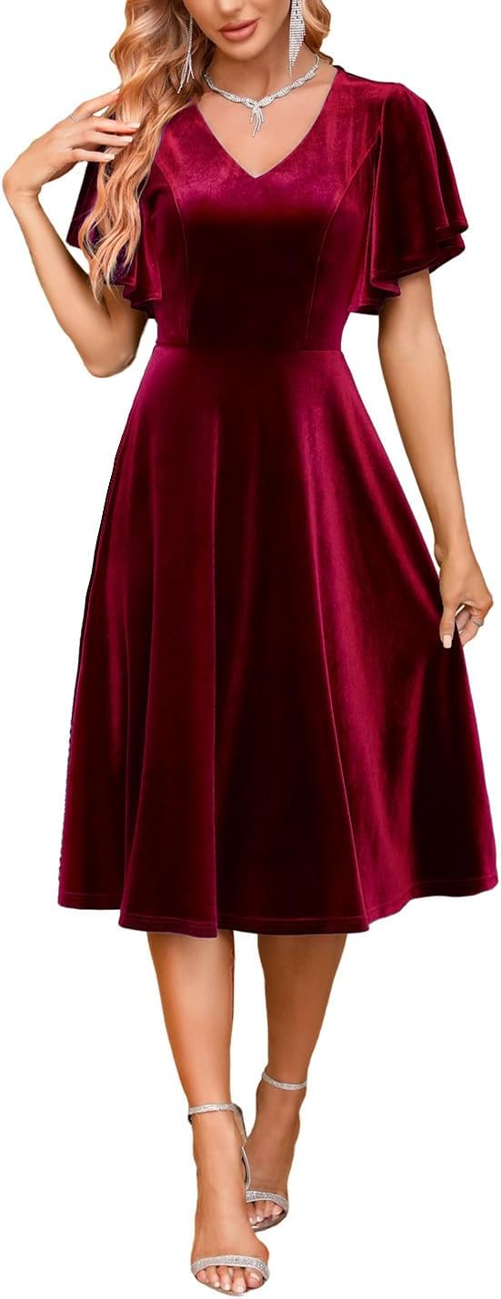 Velvet Sequin Christmas Holiday Party Dresses for Women, Sparkly Cocktail Wedding Guest Dress